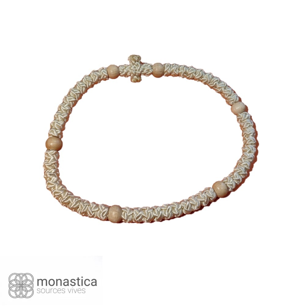 Ce chotki ivoire est composé de 50 nœuds, découpé en dizaines de nœuds par des perles en bois naturel