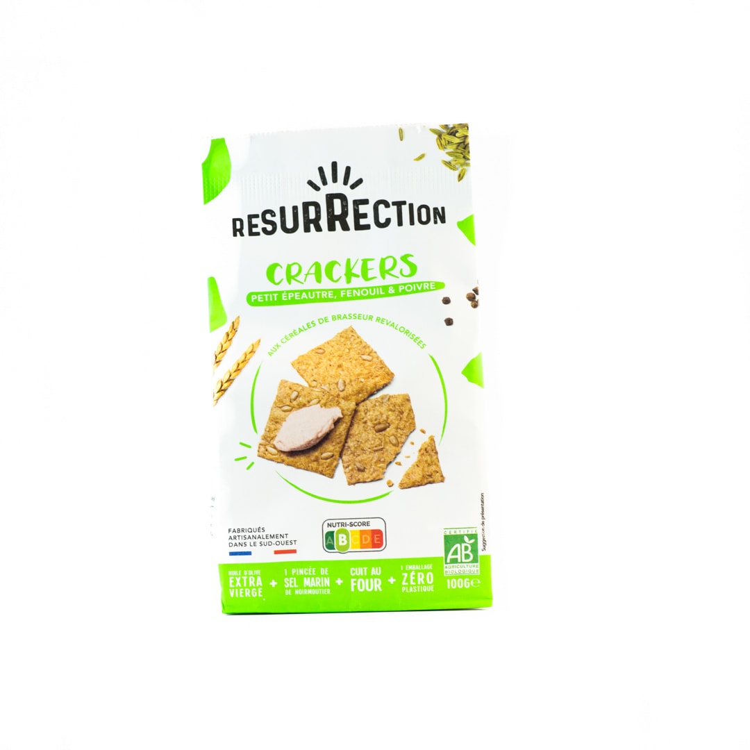 Crackers Résurrection – drêches, petit épeautre, graines de fenouil BIO (100g