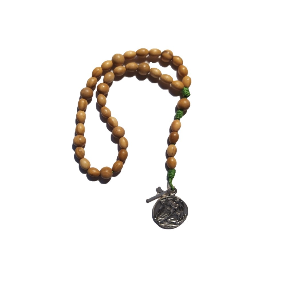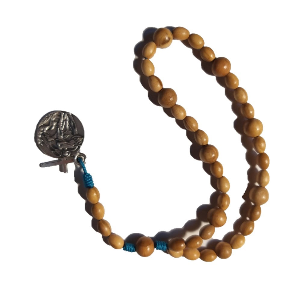 Ce chapelet particulier – car composé de 39 grains en bois d’olivier – permet de réciter la prière du chapelet de Saint-Michel. Accompagné à la fois d’une médaille de Saint Michel et d’une petite croix en métal signifiant que Saint Michel nous accompagne dans le combat déjà victorieux du Christ Lui-même.