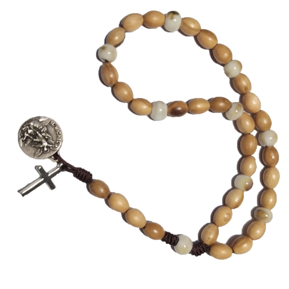 Chapelet simple de Saint Michel en bois d’olivier et perles de céramique