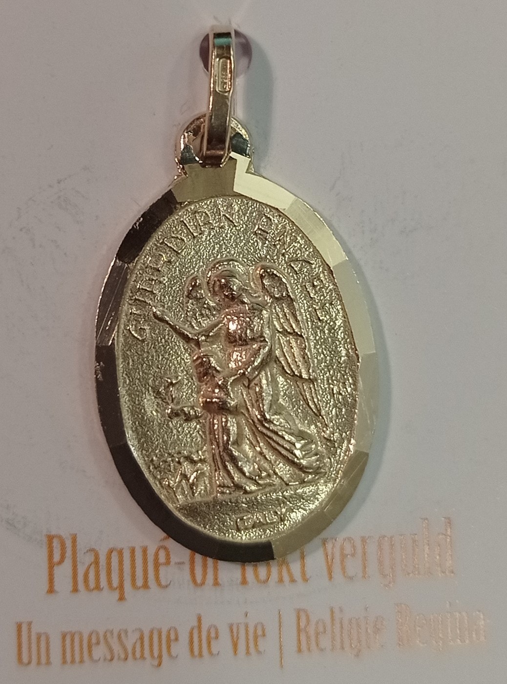 Accueil > Boutique > Mon coin prière > Croix et médailles > Pendentifs > Médaille ange gardien plaqué or ovale