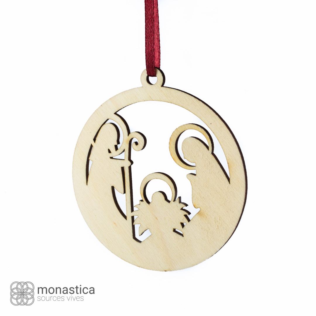 Suspension de Noël de forme ronde à suspendre dans le sapin. Il existe 3 modèles ( Sainte famille, bergers, rois mages )