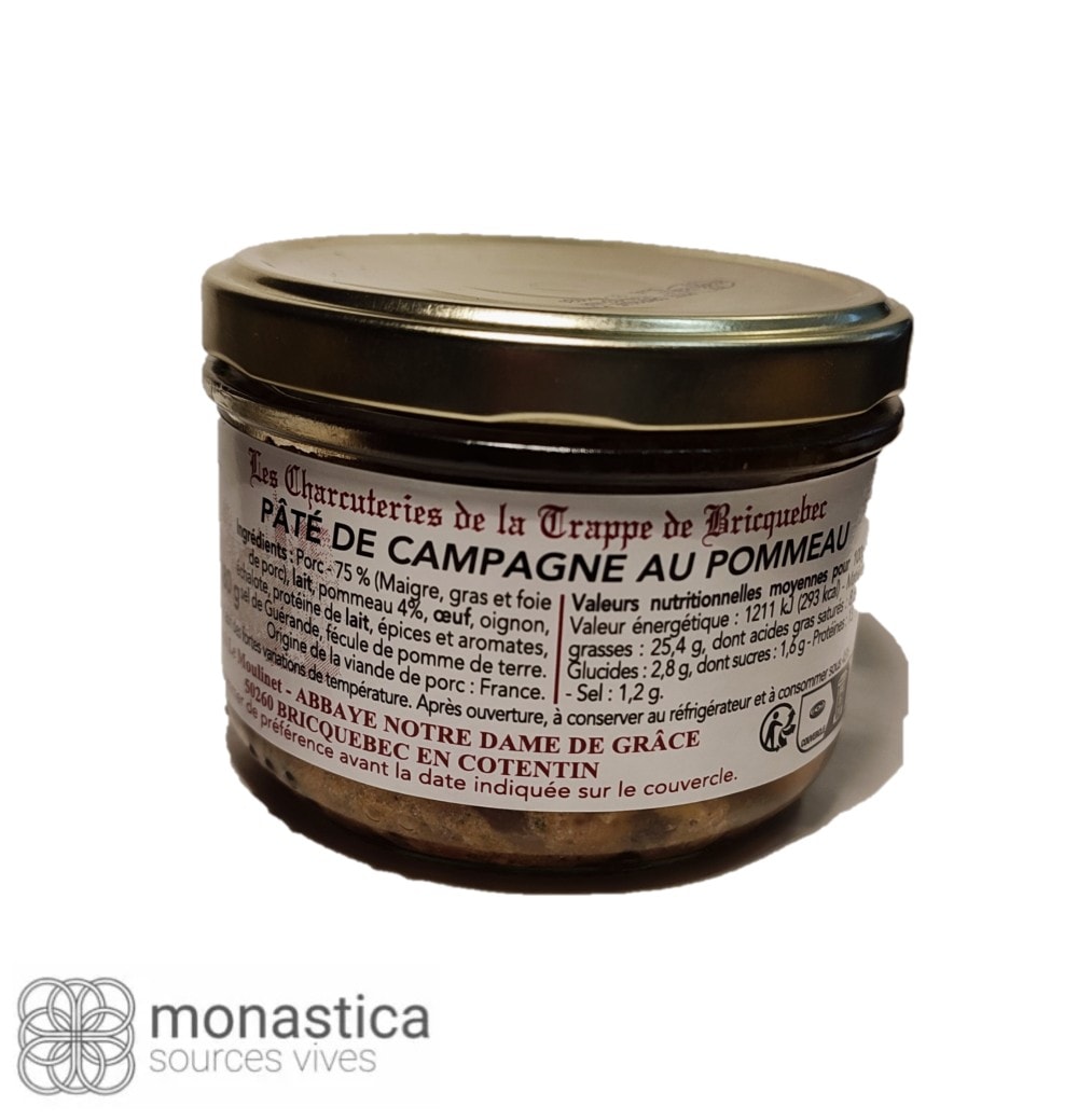 Le pâté de campagne au pommeau provenant de « Charcuteries de la Trappe » de l’Abbaye Notre Dame de Grâce de Bricquebec (Normandie) fait partie d’une très bonne gamme des pâtés que produit leur laboratoire. Présenté en verrines fermés sous vide, il n’a pas besoin d’être au frais jusqu’à son ouverture.