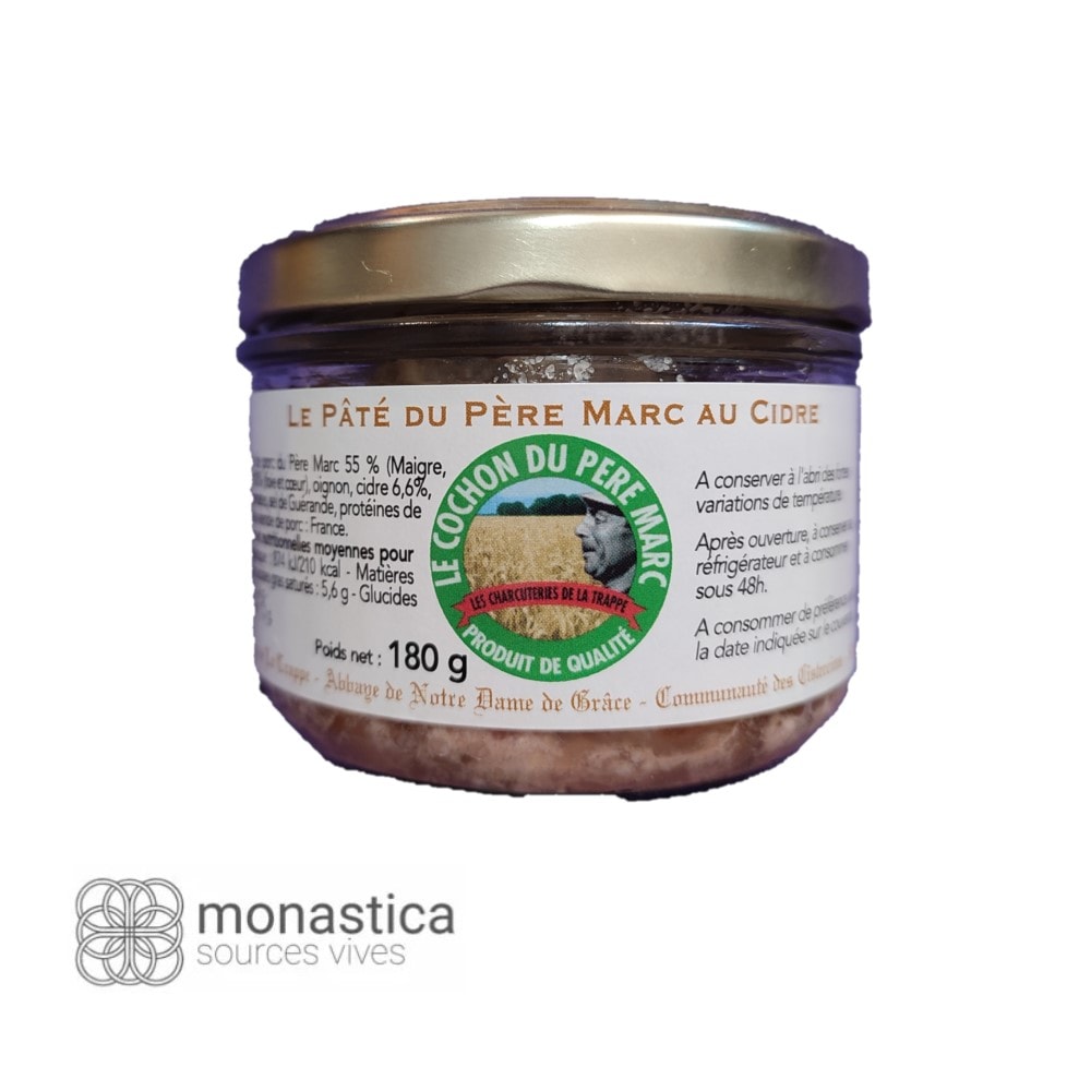 La Pâté du Père Marc au cidre provenant de « Charcuteries de la Trappe » de l’Abbaye Notre Dame de Grâce de Bricquebec (Normandie) fait partie d’une très bonne gamme des pâtés que produit leur laboratoire.