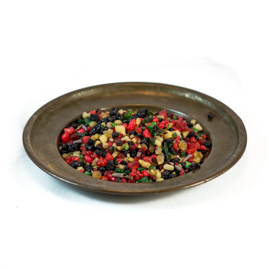 Utilisation : Verser quelques grains d’encens sur du charbon enflammé préalablement.