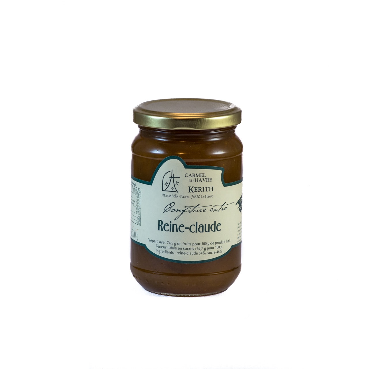 La confiture de reine-claude du Carmel de la Transfiguration (Le Havre) fait partie d’une gamme de confitures et de gelées plus légères en sucre. Elles sont cuites au chaudron par petite quantité et sont fabriquées à partir d’un sirop de sucre à la perle dans lequel sont jetés les fruits fraîchement récoltés. Tout le secret de cette fabrication réside dans le degré de cuisson du sirop de sucre, adapté à chaque fruit et à chaque saison. Cette technique artisanale permet une cuisson rapide du fruit qui lui conserve toutes ses vitamines et sa saveur.