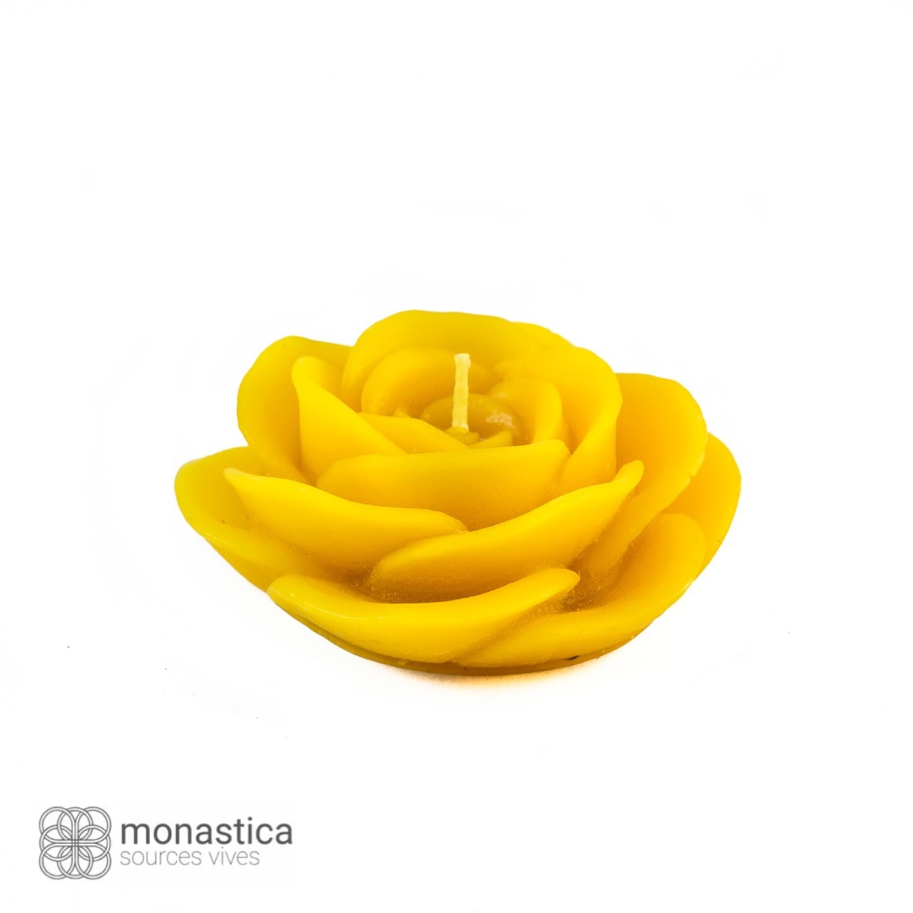 Bougie Rose de Mai en cire d’abeille naturelle, vendue dans une jolie boite kraft.