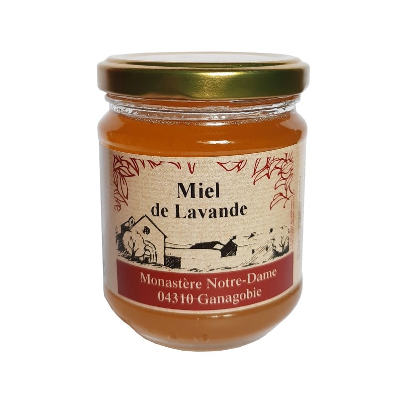 Ce Miel de lavande, présenté par le monastère bénédictin Notre-Dame de Ganagobie, provient du Luberon en Provence.